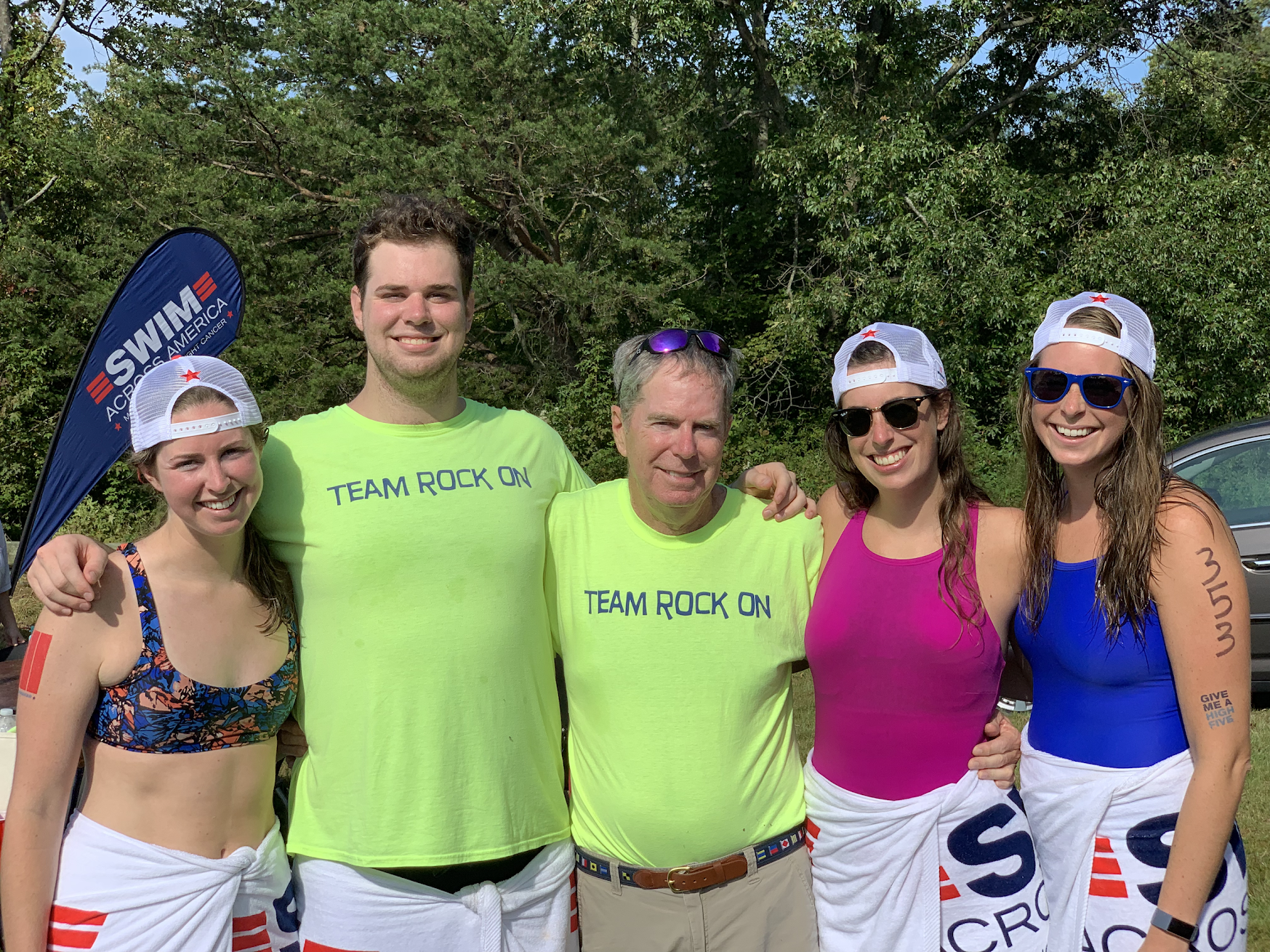 Now, six years later, Team Rock On continues to swim to honor their mom, their PopPop, who passed away in January after being diagnosed with melanoma in 2020, and many other family members and friends who have been affected by cancer. They have raised an incredible $600,000 for the local beneficiary Johns Hopkins, and they know all too well the importance of the funding and support. “The team at Johns Hopkins helped our mom fight for more time with us and were instrumental in the development of Keytruda, the cancer drug our grandfather received to treat his melanoma. We swim every year to support the work they do every day to help patients and families like ours.”