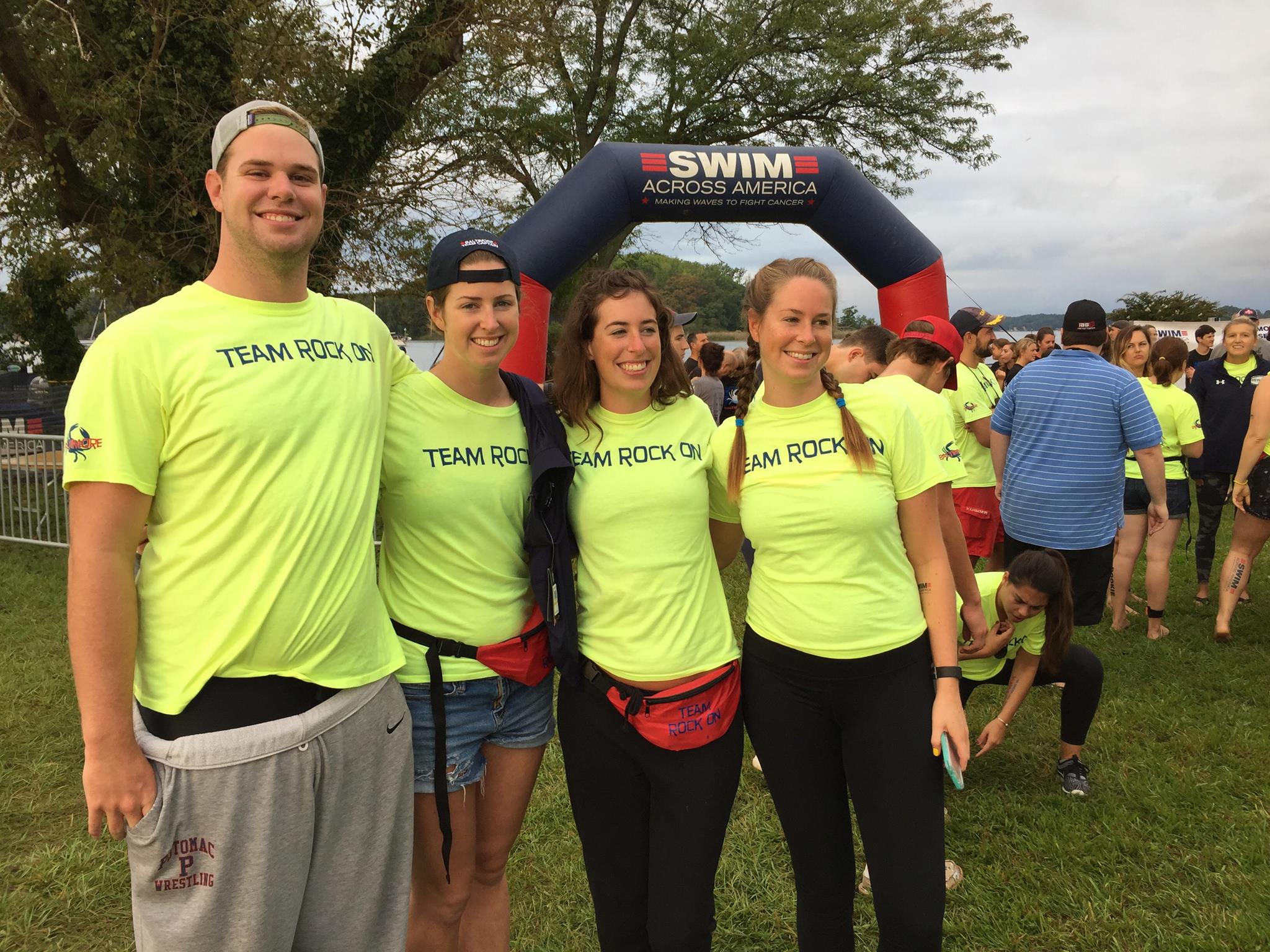 Team Rock On is a rock star in that they have raised more than half a million dollars for crucial cancer research. Tea Rock On was formed in 2016 as a way for the family to honor the memory of Cristy Rock, who sadly passed away in May of 2016 after a two year battle with colorectal cancer. Cristy’s children, Sammy, Emma, Hanna and Trevor, found participating in Swim Across America – Baltimore provided an amazing way to honor their mom, as the beneficiary, Johns Hopkins Hospital, was where Cristy was treated during her cancer battle. “Participating in SAA Baltimore honors our mom’s memory in a very personal way. Every year at the swim, we see the faces of people whose lives our fundraising has helped save, and even though we still wish our mom could be one of those faces, it helps us to cope with her loss to know that our swimming is truly making a difference.”