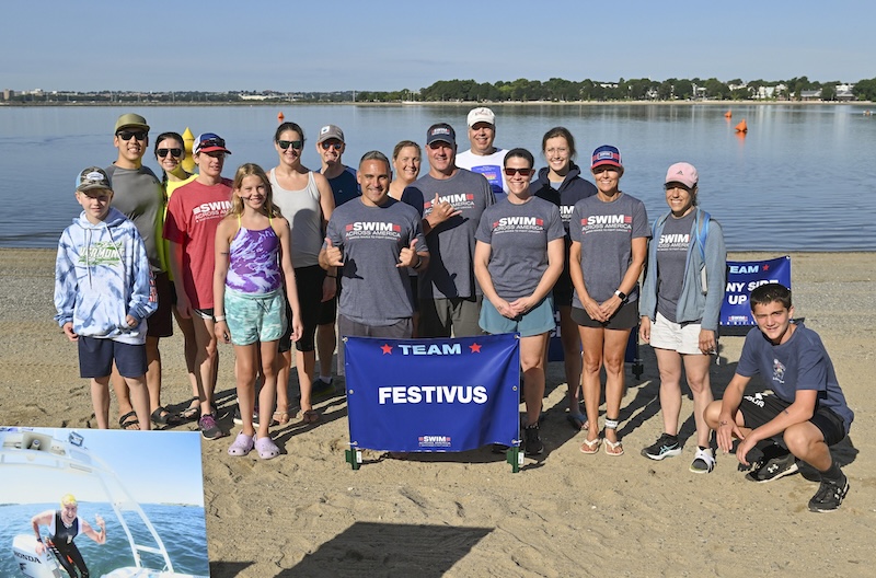 One member of Doug’s SAA-Boston swim group has helped him tremendously. Rick Osterberg, who himself is a cancer survivor and also received an immunotherapy pioneered with funding provided by Swim Across America, is Doug’s “cancer coach” and they swim together on Team Festivus.