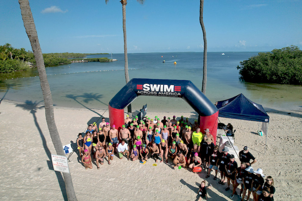“Our Swim Across America – Florida Keys open water swim is one of the most beautiful swims in the world,” noted Susan Latham, co-event director. “Sometimes we get lucky and a few dolphins decide to join us and swim alongside us. The sun is usually always shining, and the beauty of the beach, along with the passion of the swimmers, helps make the day unforgettable and inspiring. The gathering of so many families and so many individuals is incredible — whether they are currently battling it out, are survivors or have lost someone. To hear the stories and to learn about those whom cancer has touched and to experience that the outpouring of support is just amazing. The feeling of wanting to make a change and to do something for those who have experienced cancer is huge.”