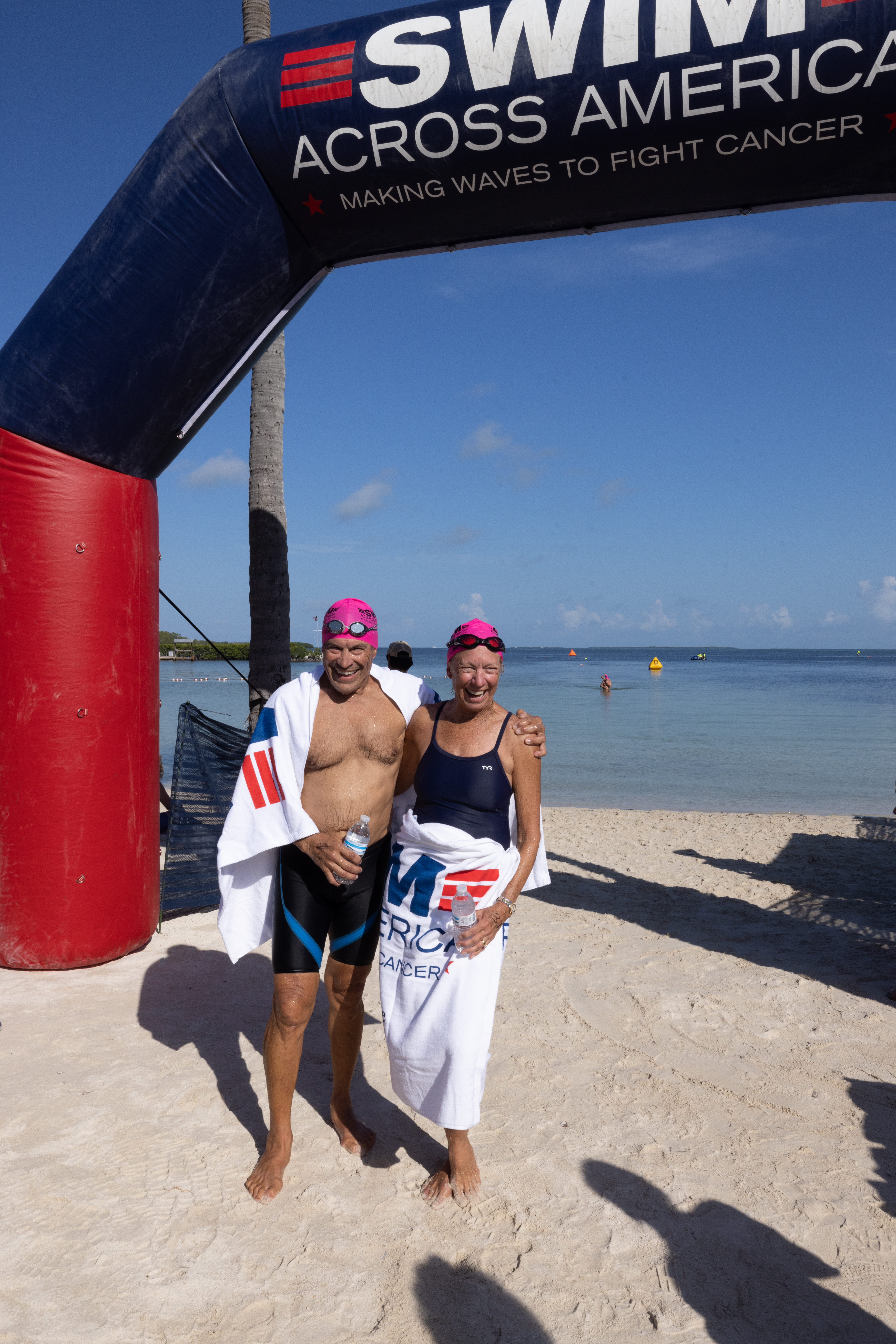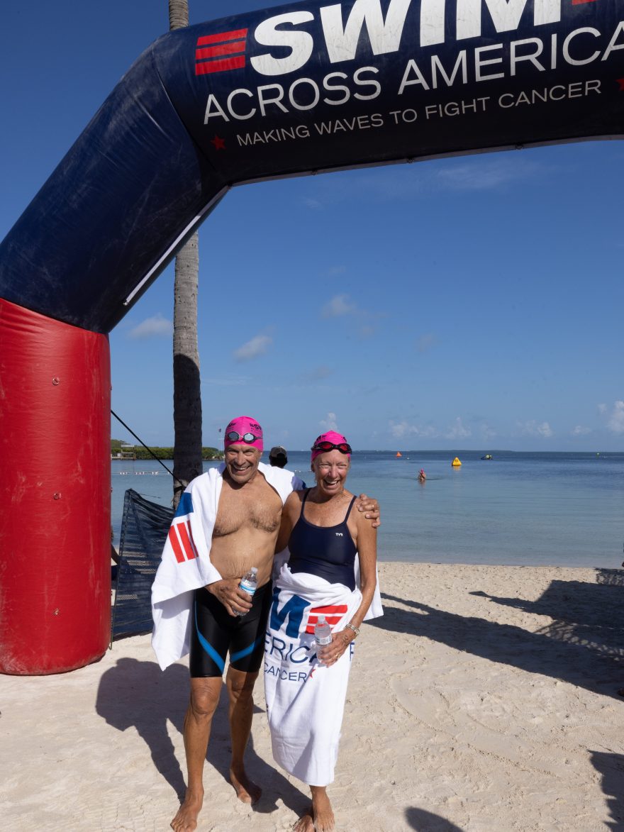 Swim Across America – Florida Keys event directors, Glenn and Susan Latham, at the 2025 event.