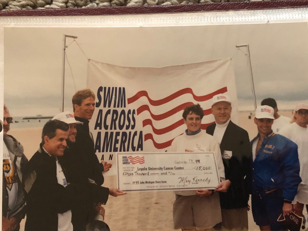 Mary McCullagh, center, at the inaugural Swim Across America – Chicago event in 1994.