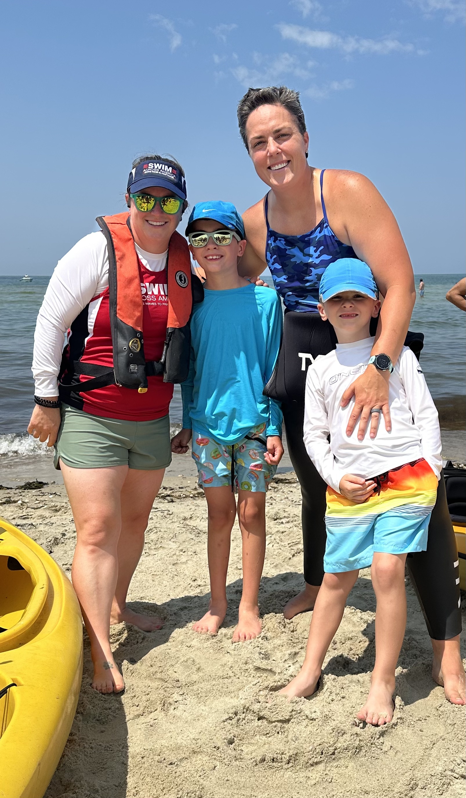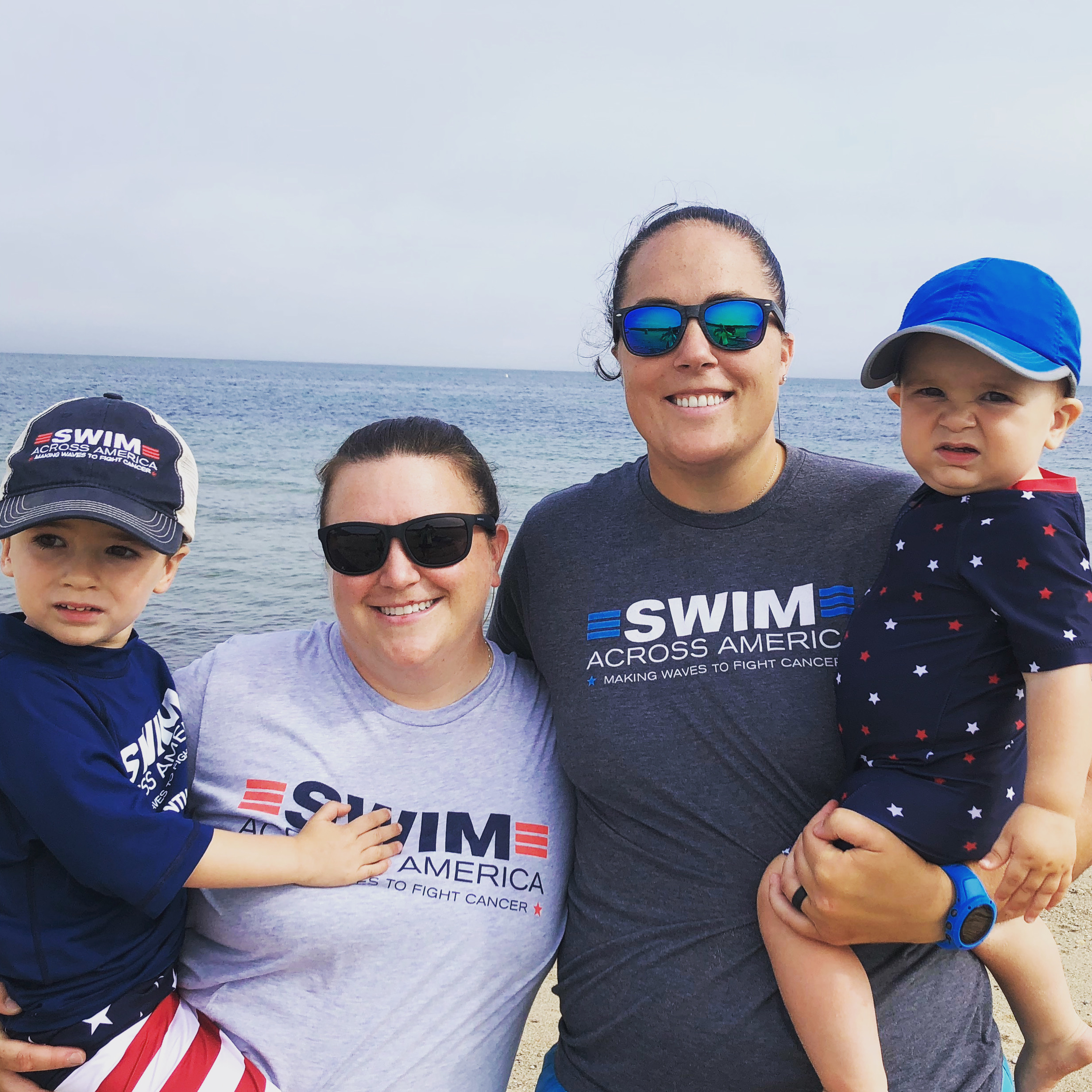 Natalie Thompson, her wife Cassie, and their two sons at a Swim Across America – Nantucket event.